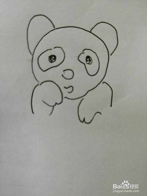 第五步,在可爱的小熊的头部下面画出两只小手,注意小手轮廓的画法。