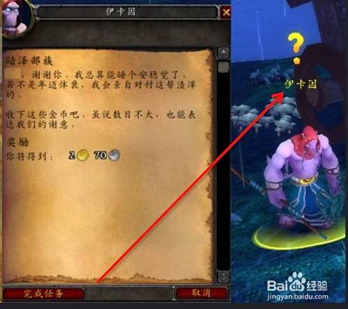 第三步:击杀完成后回到NPC伊卡因处交任务即可。
