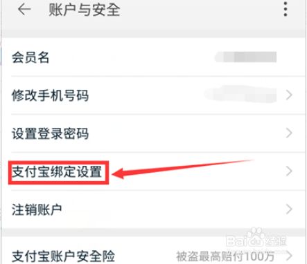 2. 点击账户与安全,点击支付宝绑定设置,点击换绑支付宝。