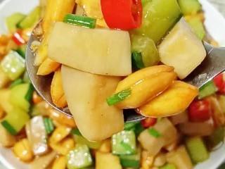 14倒入花生米,翻拌均匀,撒上葱花即可享用。    END END