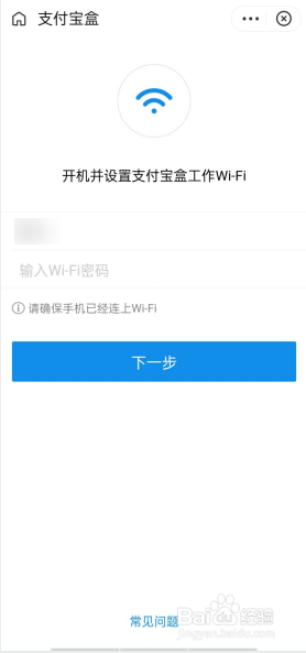 开启手机蓝牙,开始和支付宝盒配对,配对成功,输入支付宝盒连接的wifi密码。