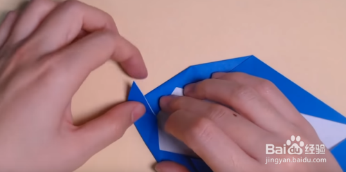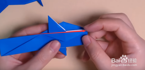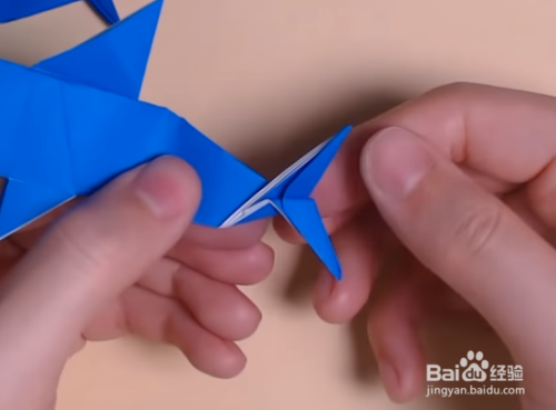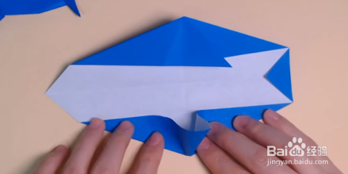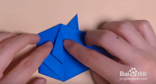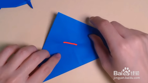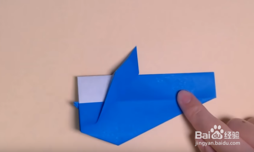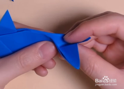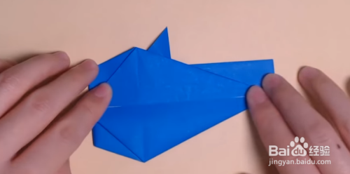 摊开我们的鱼身,折出三角也就是我们的鱼头