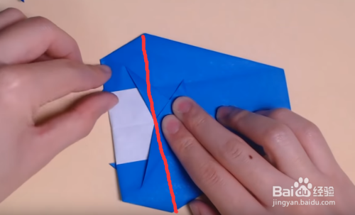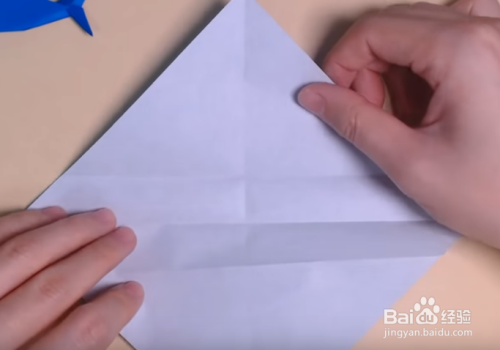 另外一边的三角往这边折叠,然后摊开,另外一边也折叠出痕迹
