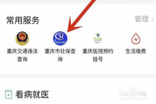 在进入城市服务功能之前,会先对自己所在的城市进行定位,当然也可以自己设置。比如是在重庆,只需要找到找到“重庆市社保查询”,并点击它即可。