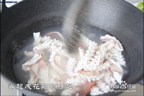 烧适量热水,沸腾后,倒入鱿鱼板,卷起成花即可捞起。