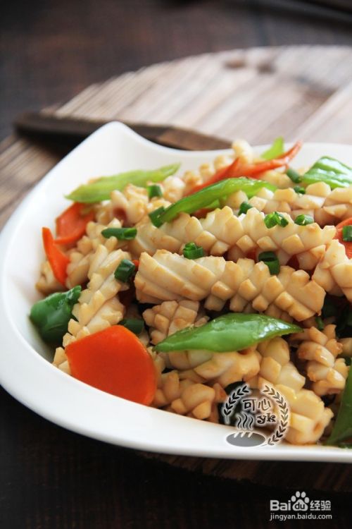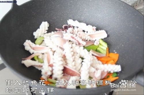 1、焯鱿鱼时成卷即可捞起,不要焯时间长了,否则容易硬。 2、炒菜时各种材料加入后少许翻炒即可。