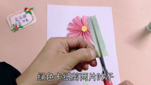 10绿色卡纸剪两片叶子。