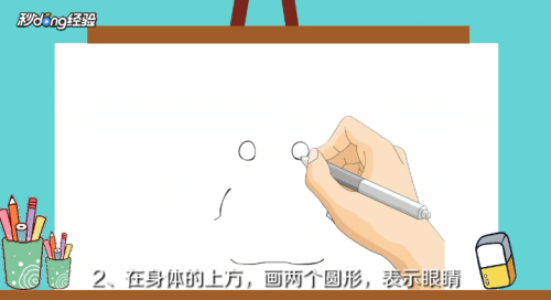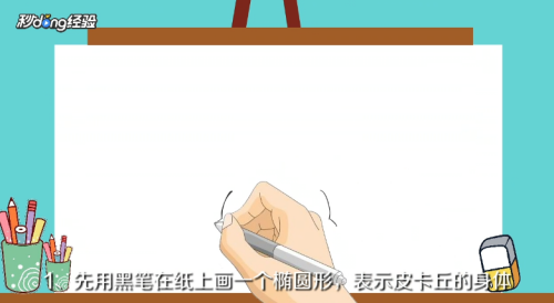 1用黑笔在纸上画一个椭圆形,表示皮卡丘的身体。