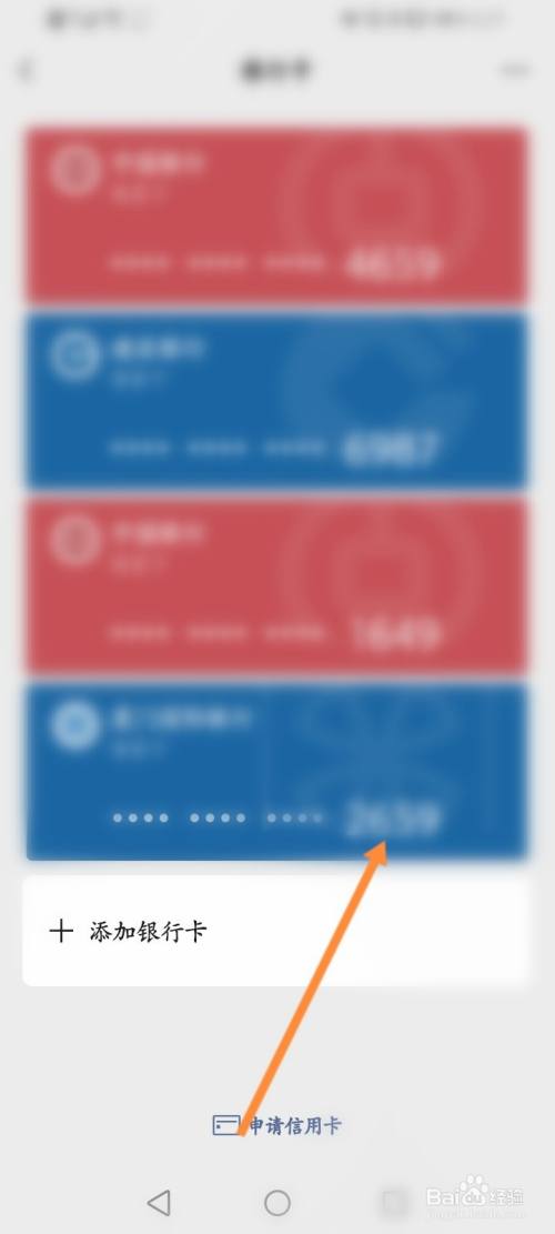 只能查看银行卡的后四位数,要查看整个卡号,只能在实体银行卡上查看。