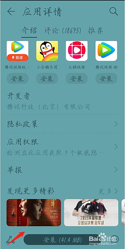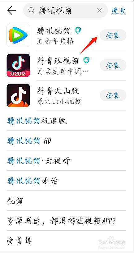 2.在应用游戏目录下找到腾讯视频,点击安装字样,等待安装完成,至此,安装完毕;