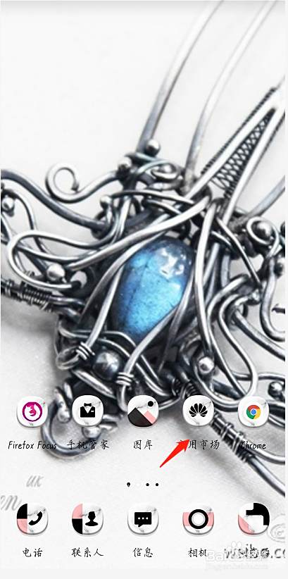 第二步,在桌面上找到华为手机应用市场,并将其点开,输入腾讯视频