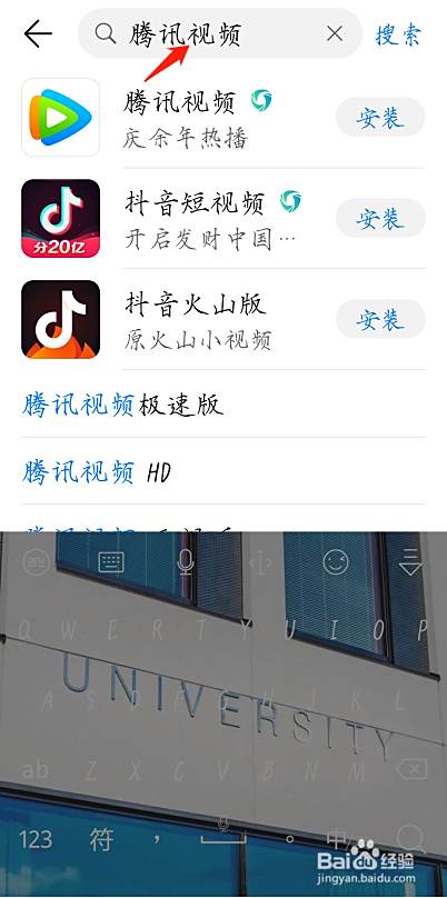 第三步,在搜索框内输入腾讯视频字样,点击搜索