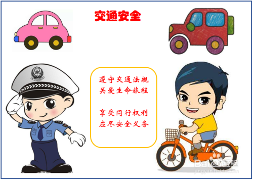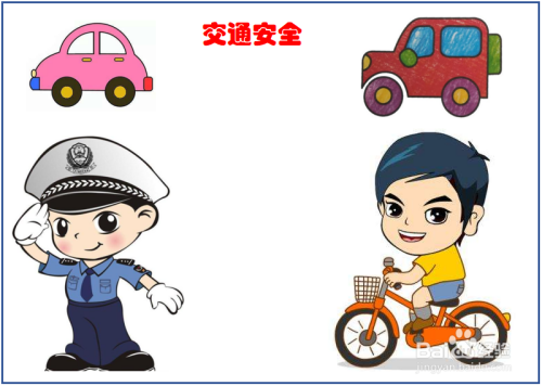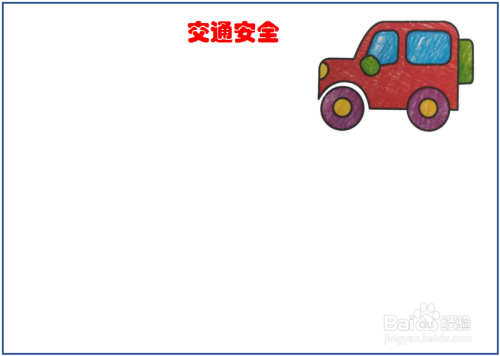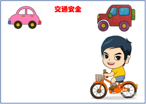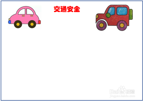 最后在中间画一个线框,写上注意交通安全宣传标语,一幅简单的手抄报就画好了