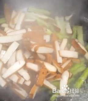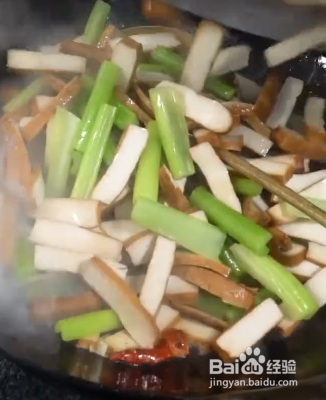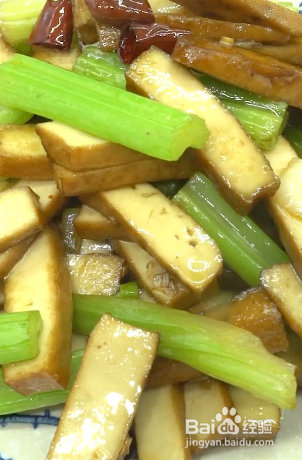 芹菜,香干切好,水开以后放入焯水,再次开锅以后,给它煮上个三五秒钟捞出,。