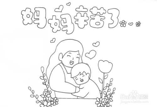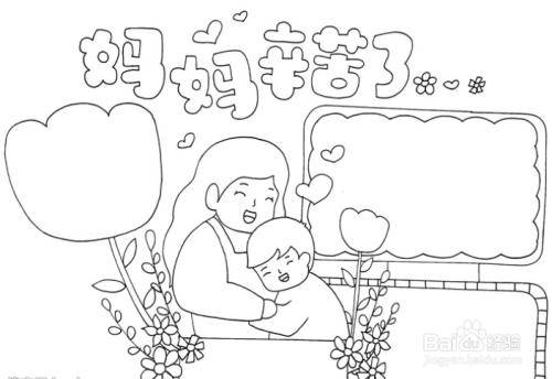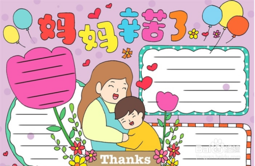 最后,我们在边框中画上横线,简单漂亮的妈妈辛苦了手抄报就完成了。