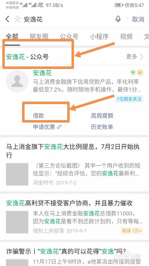 4,点击进入,你会看到安逸花公众号,点击下面的“借款”