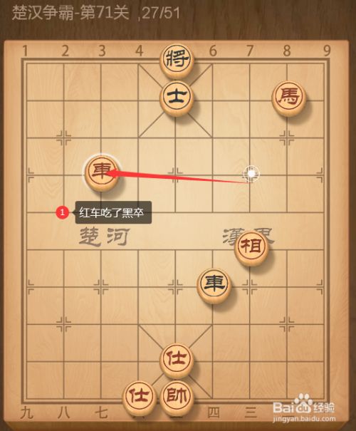 第七十一关实力强劲,黑方双车全,士像全,而红方只有一个红车一个单马,所以要想通关就得抓住战机,否则就会通不过。小伙伴们请跟着我下图步骤走棋。