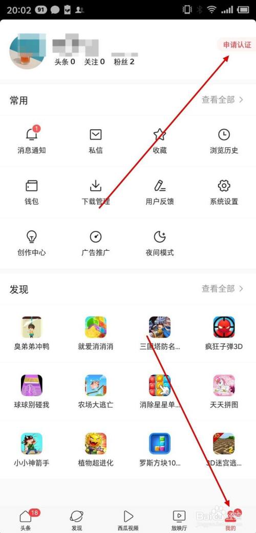 打开今日头条app,用上面注册相同的手机注册登录,点击【我的】,点击【申请认证】,如下图所示