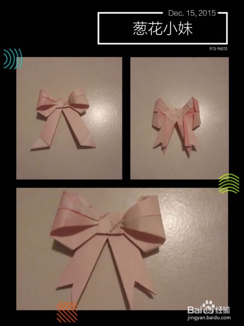 最后将蝴蝶结下方两侧用剪刀检出形状,蝴蝶结就完成了