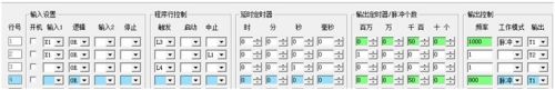 1、 第1、2行由开关X1启动,第1行设置脉冲频率1000赫兹,脉冲个数5000个;第2行Y2设置为输出保持(长延时),方向为正向。