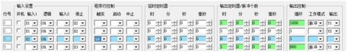 2、 第1行脉冲输出结束自动停止,并终止第2行Y2,方向为反向;同时第1行触发第3行延时1秒钟(可根据情况设置),换向时候暂停一下。