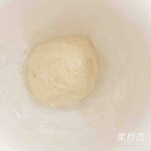 3揉成光滑的面团,盖上保鲜膜,放在温暖的地方发酵至两倍大左右!现在天气炎热,一个小时不用就好了!
