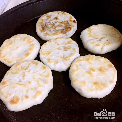 电饼铛或平底锅擦一点点油,烧热放饼,改小火慢慢煎至两面金黄出锅,全程盖盖,盖锅盖,盖锅盖,不然的话饼不软乎,口感不好。
