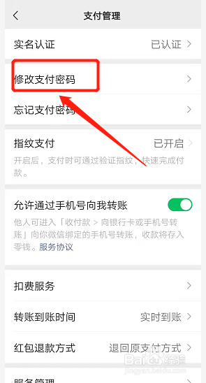 进入到了支付管理页面后,点击修改支付密码进行修改即可。