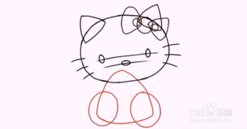 在手臂上,画出每个人的椭圆。别忘了给她的拇指打两圈!HelloKitty并没有真正的手指,像人类,或者爪子,就像猫一样;她的样子对她来说是独一无二的,所以要努力把它做好。