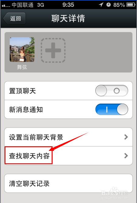点击最右上角的“人形”头图标,在弹出的界面上选择“查找聊天内容”。