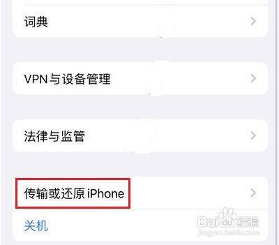 在通用界面,点击传输或还原iphone进入。