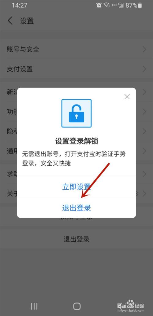 此时还会弹出一个【设置登录解锁】的提示,继续点击【退出登录】即可。