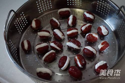 6全部红枣都塞好糯米后,上锅蒸15分钟左右即可