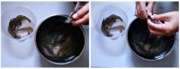 虾买回来后进行处理,用剪刀剪开虾背,用力挤一下,就能把虾头里面的脏东西挤出来,然后把虾线抽出来,剪去虾须,仔细用清水冲洗干净备用。