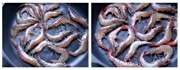 煎锅烧热,将虾放入小火煎,煎的过程中不断撒入一些盐和花椒。