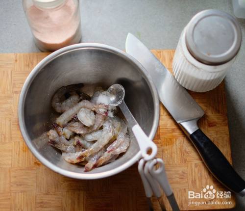 明虾剥壳,开背去沙线。