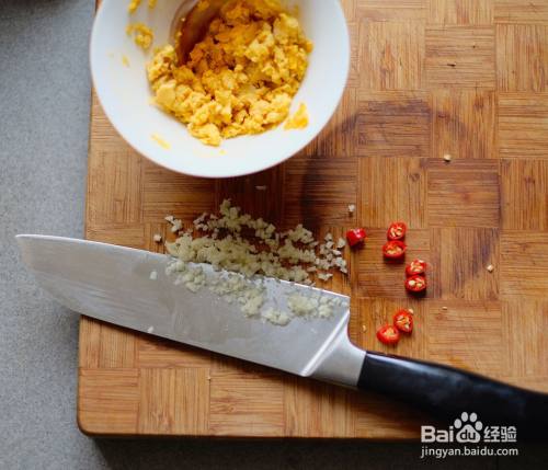 加入切碎的大蒜碎粒和小米椒混合。