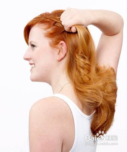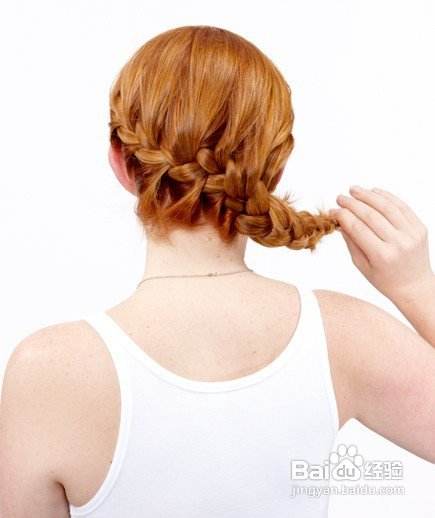 第一步:在湿发上打少量摩丝,或者在干发上喷点发胶,使秀发更容易打理。先从鬓角开始,将头发聚拢在一起然后编法式麻花辫,穿过头后方全部编完为止。如果有几缕突出来也没关系,随意一点显得更自然。