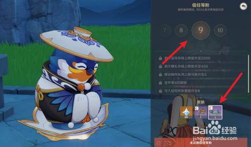 可以看到信任等阶到达9级,就可以获得花鸟喷泉。