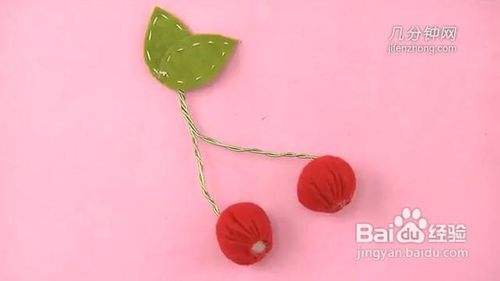 缝出叶子的轮廓,并将两片叶子粘合固定在铁丝顶端,小樱桃就做好了。