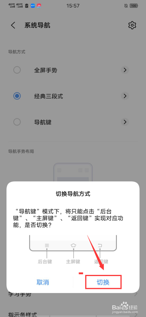 vivo手机设置返回键在下面需进入设置中的系统导航,切换为导航键即可完成设置。