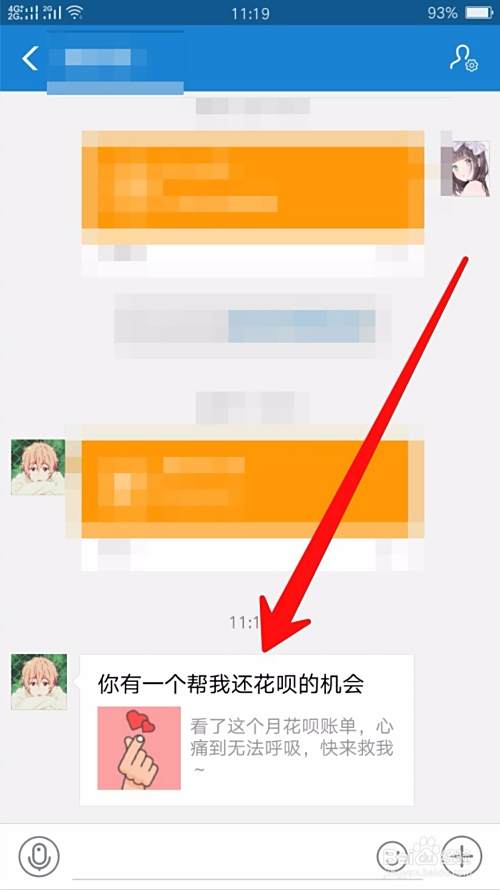 然后进入到与该好友的聊天界面之后,点击打开邀请帮忙还款的链接。