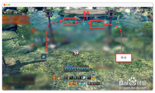 进图之后到中间的水池附近的时候,看到两边有两个荷叶,使用轻功飞到荷叶上,然后再飞到中间小BOSS处(掉水里只能点复活)。