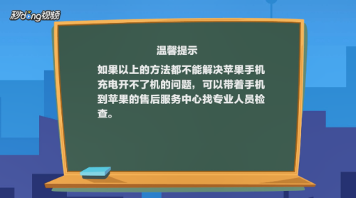 6温馨提示:如果以上的方法都不能解决苹果手机充电开不了机的问题,可以带着手机到苹果的售后服务中心找专业人员检查。END