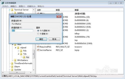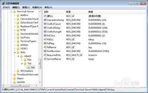 依次打开:[HKEY_LOCAL_MACHINE\SYSTEM\CurrentControlSet\Control\Terminal Server\Wds\rdpwd\Tds\tcp]