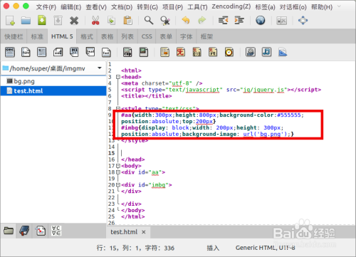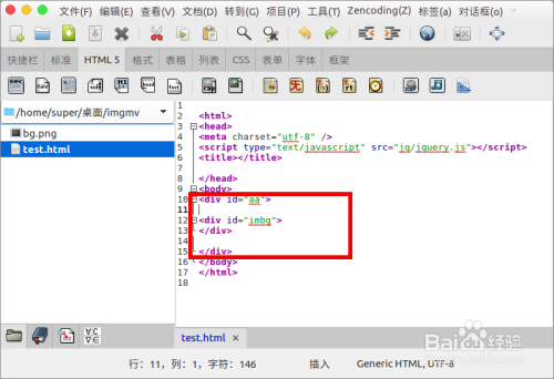 在文件夹中创建三个文件test的html文件、bg图片、jq存放文件夹。