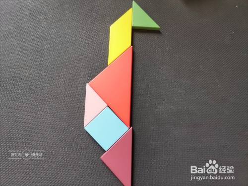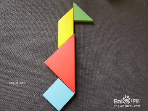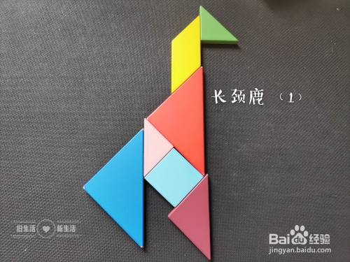 最后我们把深蓝色大三角形摆好,一只长颈鹿就拼好了。