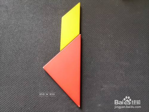 拿出一个黄色平行四边形和一个红色大三角形,把它拼成下图的样子。