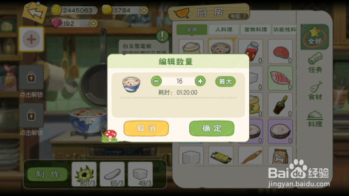 在小森生活的厨房中可以制作白玉雪莲粥,是利用雪莲、糯米和蔗糖这3种食材熬制的药膳粥。