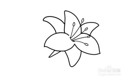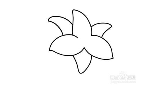 第一步:先画出百合花的三个花瓣,然后补充出百合花的其他花瓣。